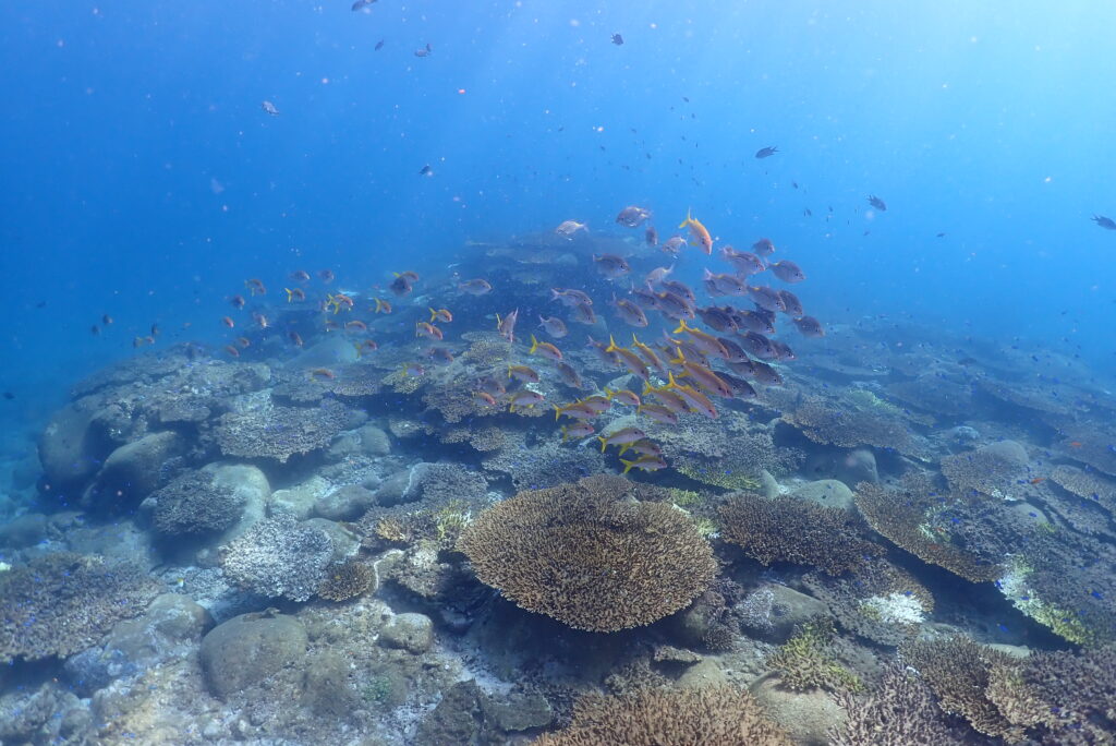 水温は変わらず、まだ27度あるので海の中は暖かいです。