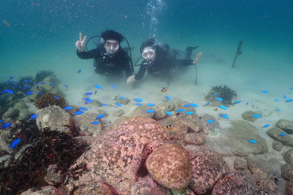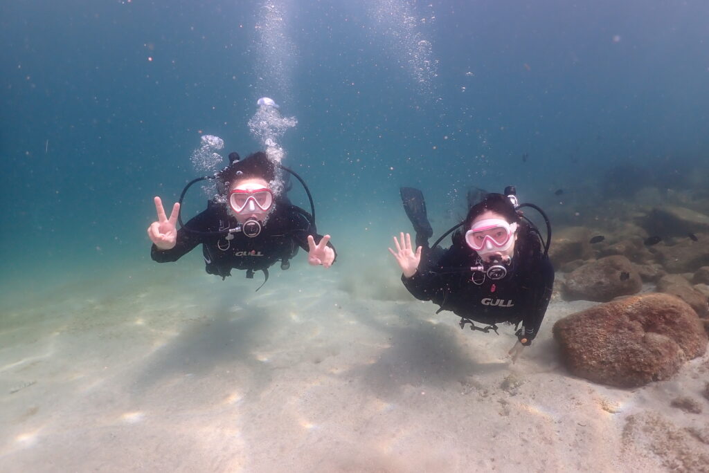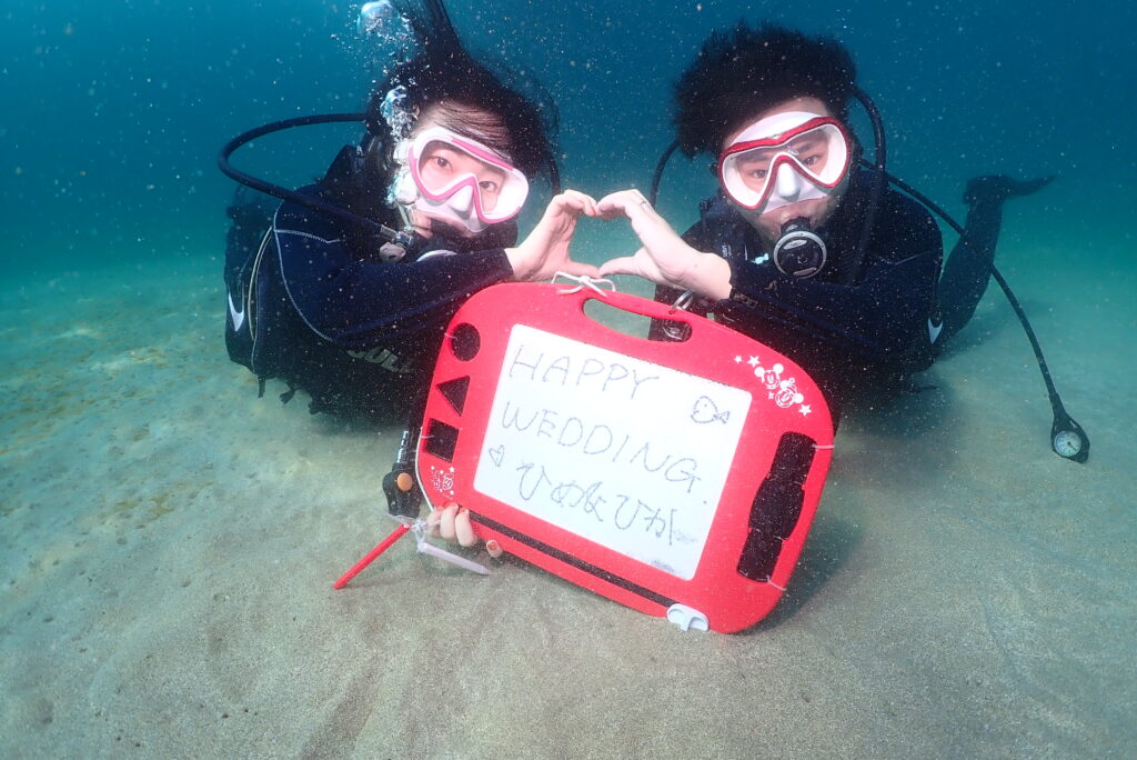 体験ダイビングのお二人は海外に住んでいて、新婚旅行で遊びにきてくれました。水中の中でも楽しそうなお二人でした!!
