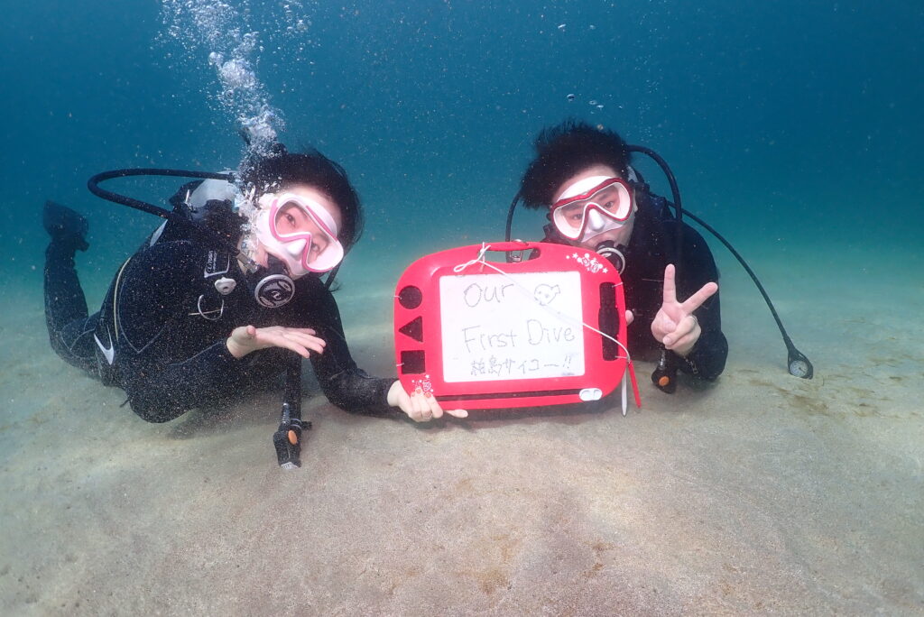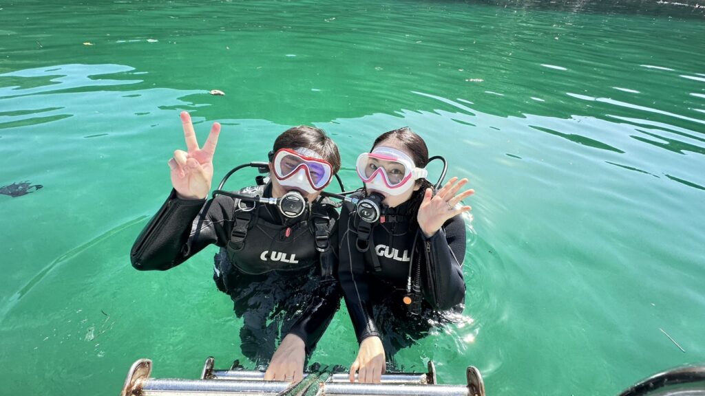 続けてきてくれて、ありがとう!体験ダイブの方は初めてのダイビングでしたが、無事に潜ることができました!