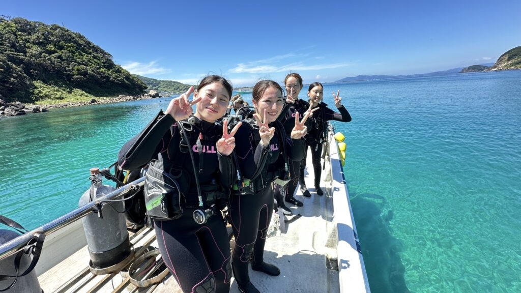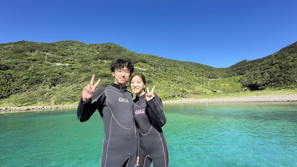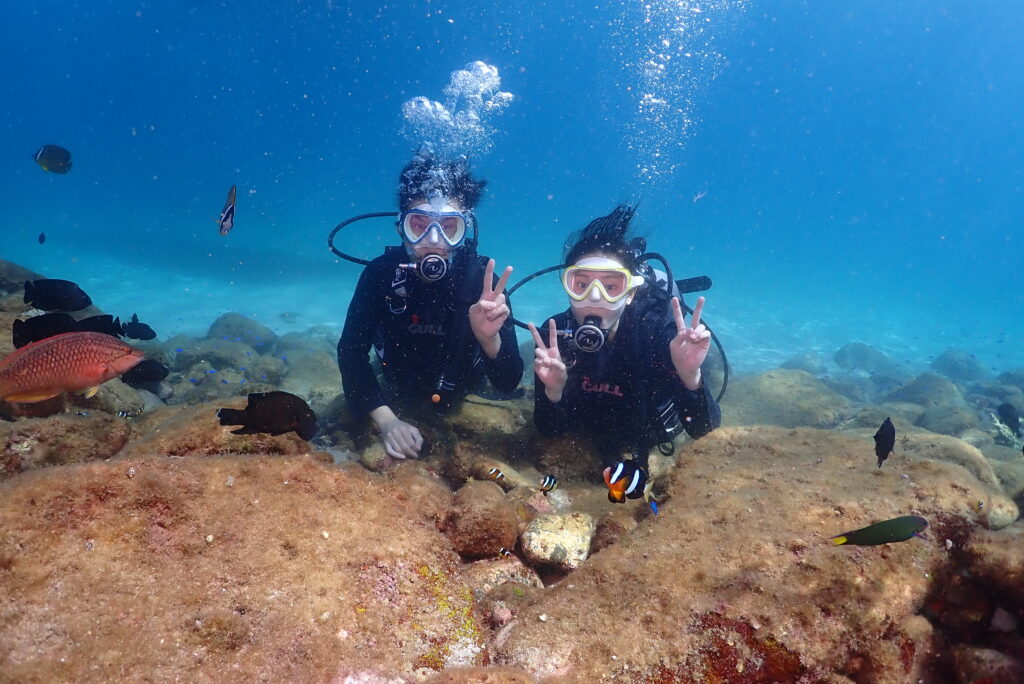 まだ日差しは痛いので、日焼け止めを忘れずに٩( ‘ω’ )و昨日と今日に体験ダイビングに参加していただいた皆様です( ✌︎’ω’)✌︎